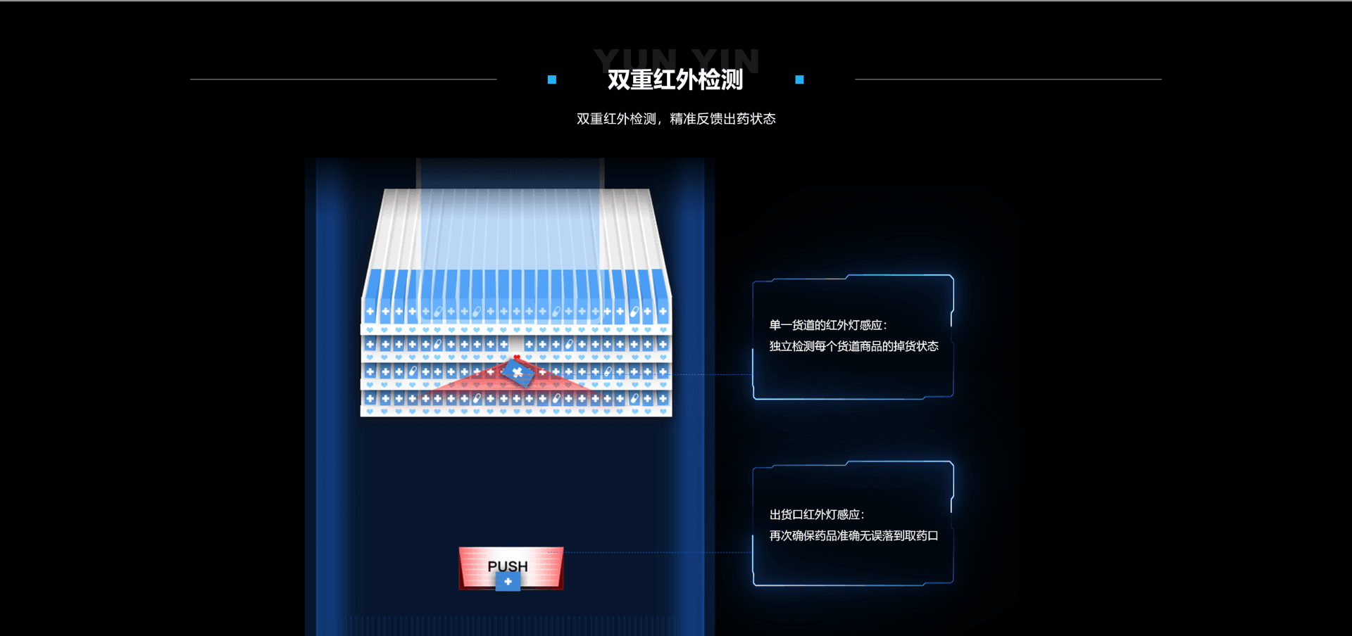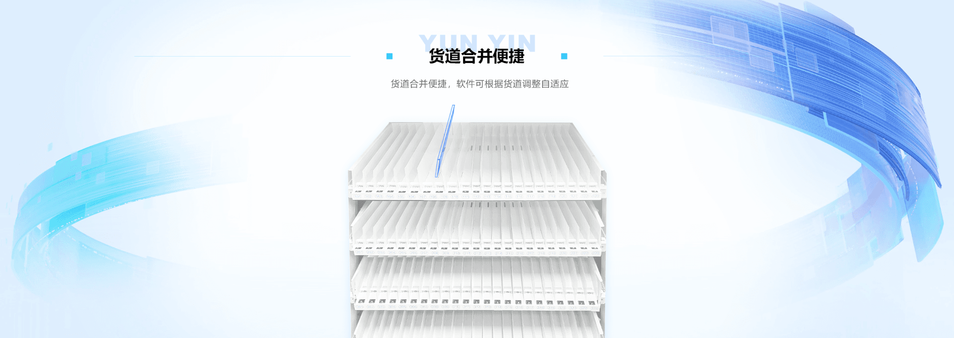 左柜7层13列推板货道,右柜7层36列微步电机货道,合计341个货道