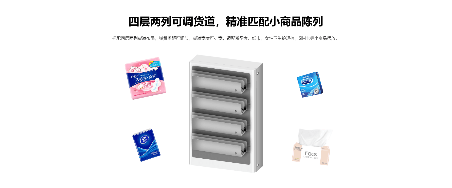 支持8*10个货道,支持柜体灯亮度调节,支持拓展副柜