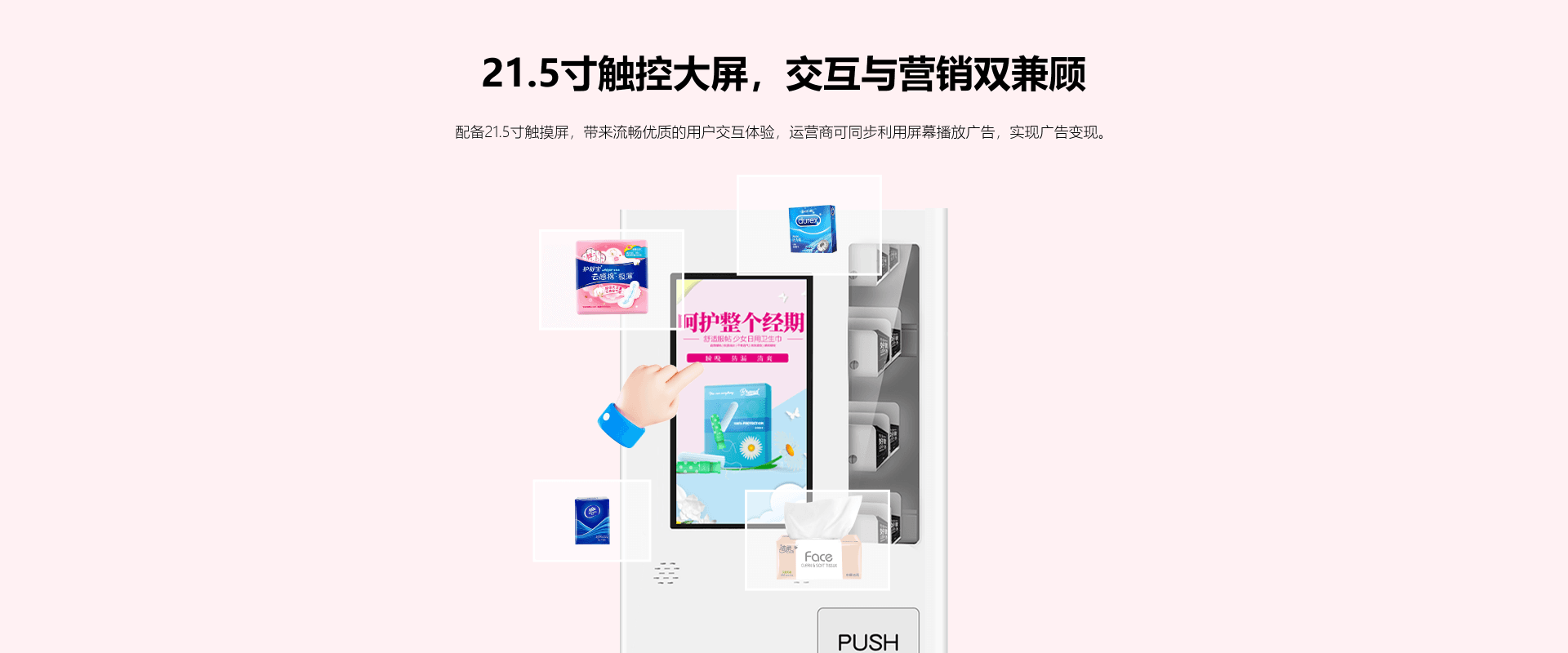21.5寸电容多点触摸,触控响应速度:<15ms