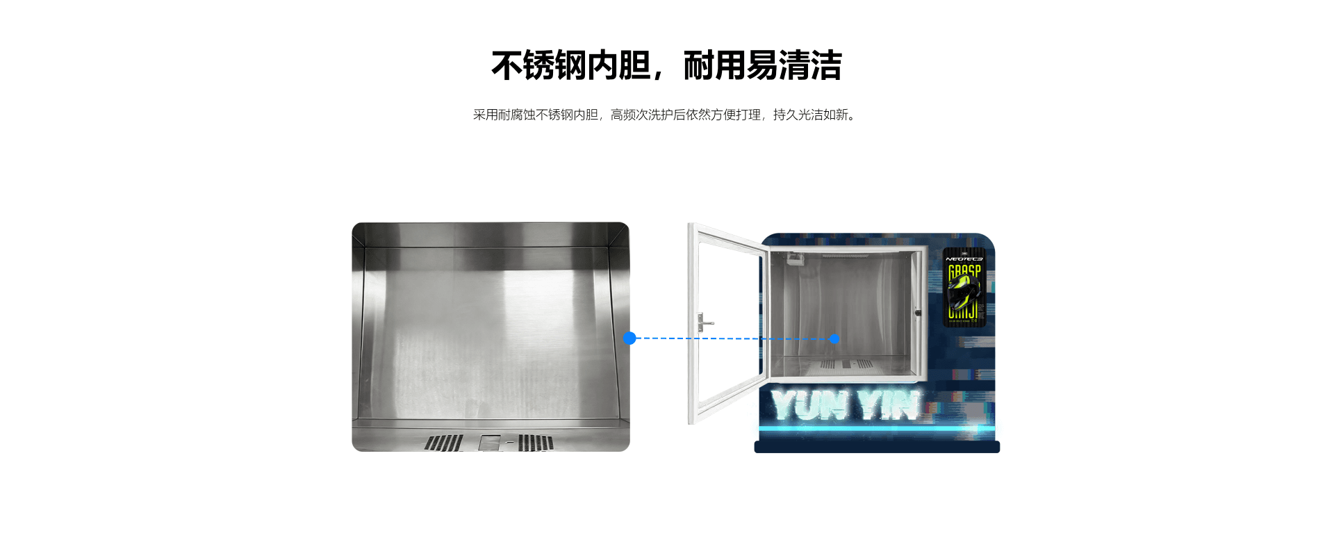 箱体内部使用不锈钢耐腐蚀材质生产加工,外部箱体使用冷轧板加工,表面喷涂环保油漆。
